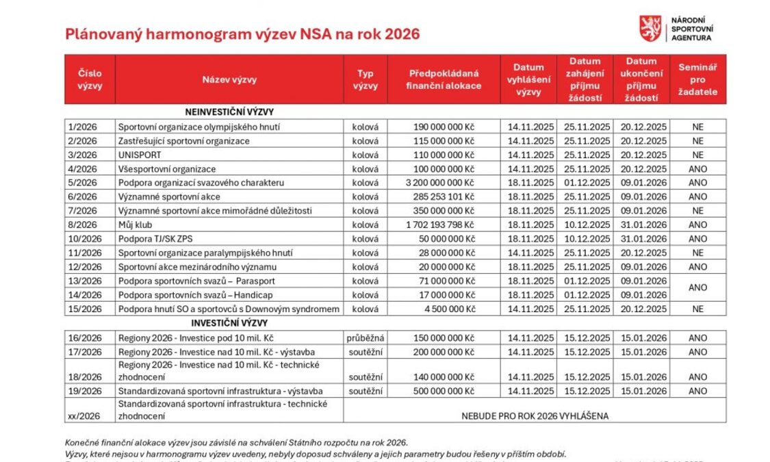 Nominujte sportovce z okresu Vyškov do 12.1.2026